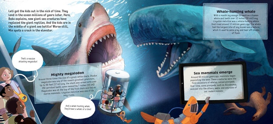 There are so many mysteries still in the ocean! That makes a trip to an ocean and maritime museum especially interesting, and that's what keeps the Museum Kids there too late! As they try to leave, a magical elevator introduces the kids to a guide who takes them deep in the ocean and into the past. From the megalodon to Viking longships and the first submarine, the discoveries and events the Museum Kids encounter engage readers with the ocean in a whole new way! This interdisciplinary title supports both the science and social studies curriculum for elementary readers.