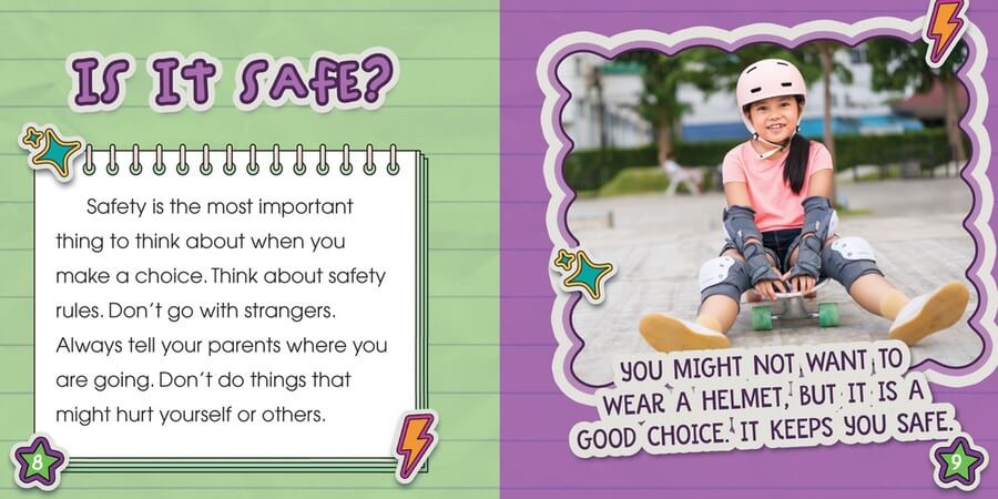 Am I doing the right thing? This question echoes in the minds of many children every day, but especially in tricky situations. Kids are trying to navigate the world as they collect information about it, which can make it difficult to know what's a good choice of action. This book gives readers kid-friendly guidance for making good choices, and shows them how to apply this knowledge to their everyday life. Narrative stories are woven throughout the text to provide readers with examples of dealing appropriately with several tricky scenarios. Readers are encouraged to think critically about each situation and problem solve in a way that keeps them safe. With a focus on personal autonomy and safety, this book is essential reading for any elementary classroom or home.