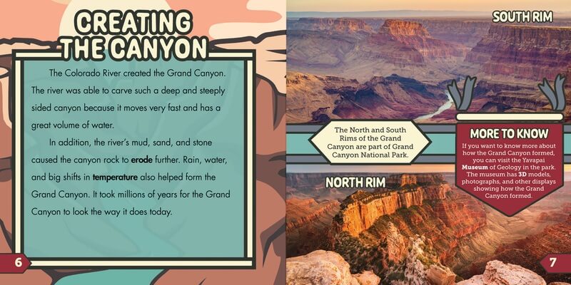 One of the natural wonders of the world, the Grand Canyon is a perfect place to stop on any road trip. But that's not the only thing that makes this park so great! The Grand Canyon is a popular location to hike and camp. On this trip through the Grand Canyon National Park, readers will discover important historical information while learning more to do on their own trip through the Grand Canyon. With important historical details about the Grand Canyon and the area around it, readers will discover more social studies information they need to know.